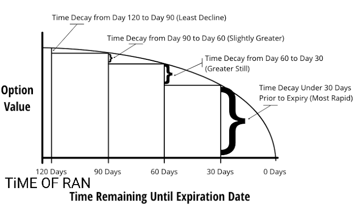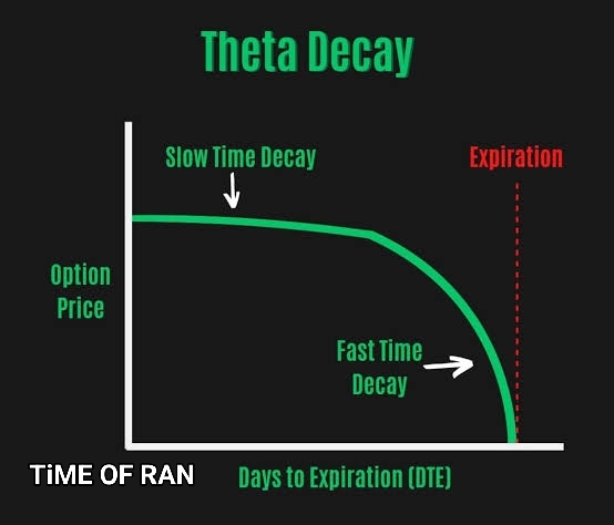 • Time Value Erosion : Options have both intrinsic value (if they are in-the-money) and time value. Theta specifically measures the time value component. As an option’s expiration date approaches, the time value decreases. This erosion in time value accelerates the closer the option gets to expiration.